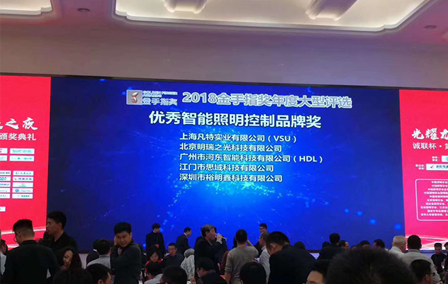 2018年我們參加了中國照明行業(yè)年度的大型評選——誠聯(lián)杯·第八屆金手指獎,榮獲“優(yōu)秀智能照明控制品牌”獎。頒獎典禮在12月22日冬至當(dāng)天盛大開幕,此次盛會以“共建照明新時代”為主題,來自行業(yè)內(nèi)外的專家學(xué)者、照明設(shè)計師、企業(yè)及媒體代表等800多人齊聚一堂,共同見證榮獲嘉獎的榮譽時刻。