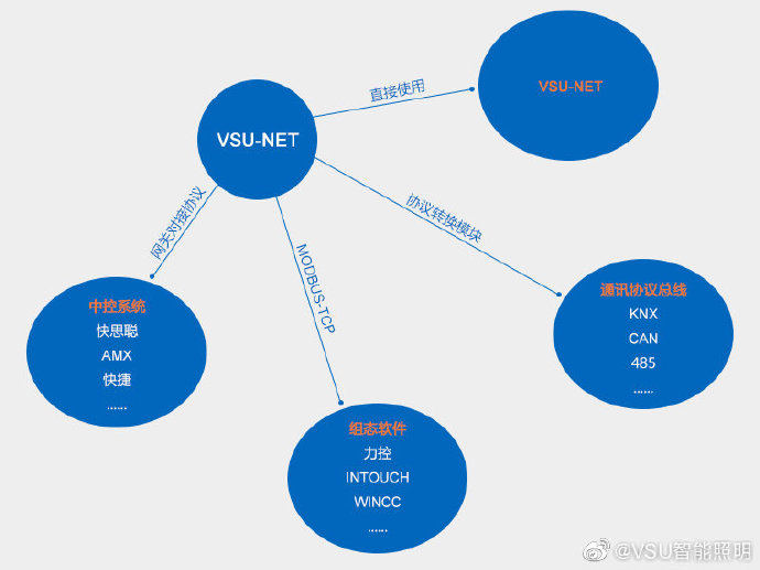 VSU智能照明控制系統(tǒng)通過自主研發(fā)的VSU-NET通訊協(xié)議可以做到單獨(dú)自組解決方案,同時(shí)也可以與市場上不同通訊協(xié)議的系統(tǒng)搭配,實(shí)現(xiàn)靈活多樣的行業(yè)智能化控制解決方案。 VSU的VSU-NET總線產(chǎn)品,大都采用雙總線口的設(shè)計(jì),搭配連接片使用,極大降低施工人員接線的工作量,產(chǎn)品設(shè)計(jì)合理專業(yè)、系統(tǒng)、更加人性化;系統(tǒng)配置免編程,手機(jī)即可完成簡單的系統(tǒng)編程,不需要電腦,人機(jī)互動(dòng),真正實(shí)現(xiàn)智能化控制!