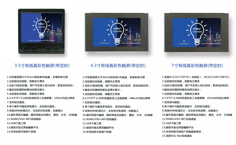 VSU有線真彩色觸屏可實(shí)現(xiàn)單控開關(guān)、窗簾和場(chǎng)景總線控制,可自定義界面支持3D文字、3D圖片、個(gè)性化界面