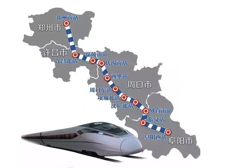 鄭阜鐵路北起鄭州南站,經(jīng)河南鄭州、開封、許昌、周口,進(jìn)入安徽省阜陽(yáng),接入商合杭鐵路阜陽(yáng)西站,線路全長(zhǎng)267公里,工程總投資約427.2億元,其中安徽段長(zhǎng)65公里,投資140億元,設(shè)計(jì)行車時(shí)速350公里。全線設(shè)鄭州南、許昌北、鄢陵南、扶溝南、西華、周口東、淮陽(yáng)、沈丘北、界首南、臨泉、阜陽(yáng)西等11座車站。鄭阜高鐵計(jì)劃今年8月開始聯(lián)調(diào)聯(lián)試,年內(nèi)建成通車,并與商合杭鐵路銜接,延伸到杭州。屆時(shí)鄭州到阜陽(yáng)僅需1個(gè)多小時(shí),鄭州到合肥僅需兩個(gè)多小時(shí),到杭州也僅需3個(gè)多小時(shí)。