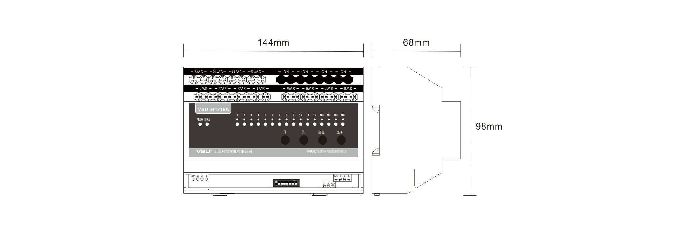 本產品為導軌式安裝,含12路智能繼電器,每回路可獨立控制3520W燈具的開關,帶應急按鍵,LED燈實時指示各個回路開關狀態(tài),可設置為互鎖控制6組窗簾開合; |