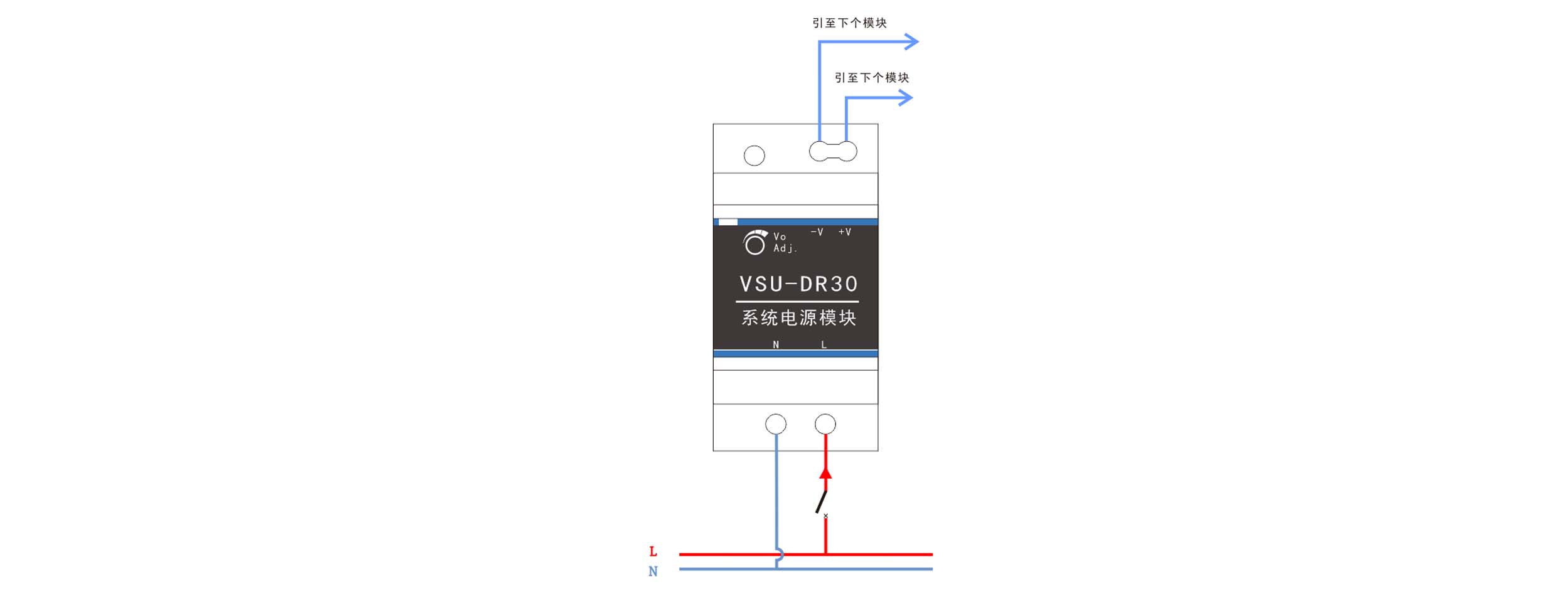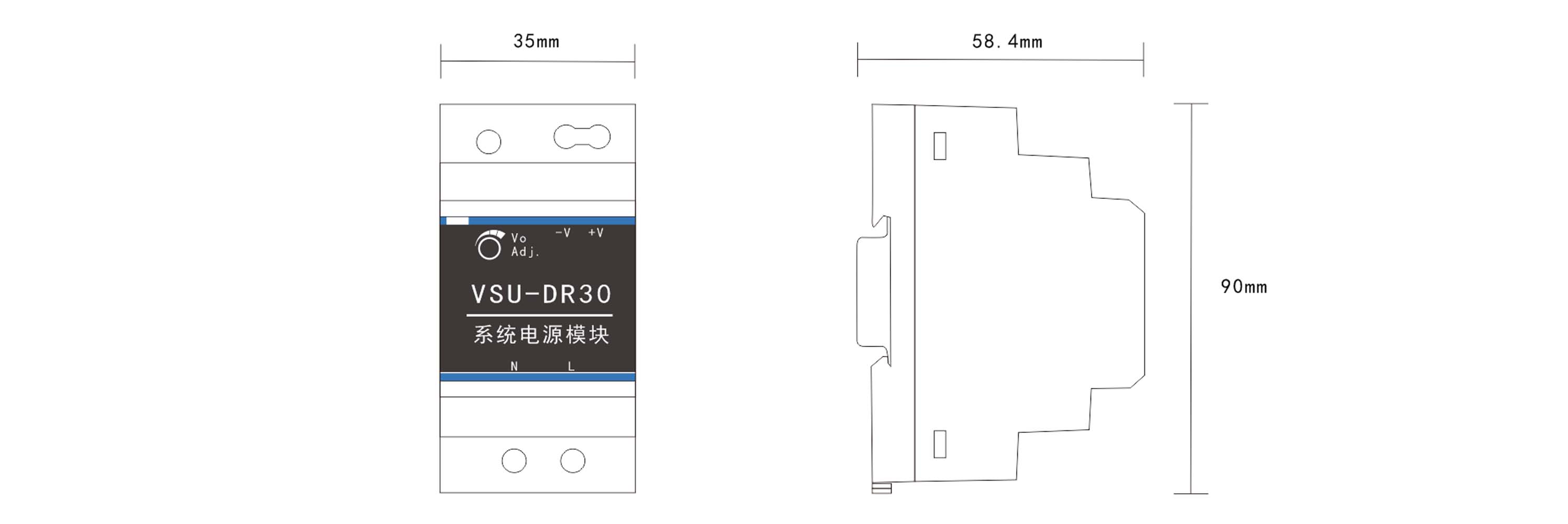35mm導軌安裝,過流、過載和短路保護,為系統(tǒng)提供可靠的供電電源;