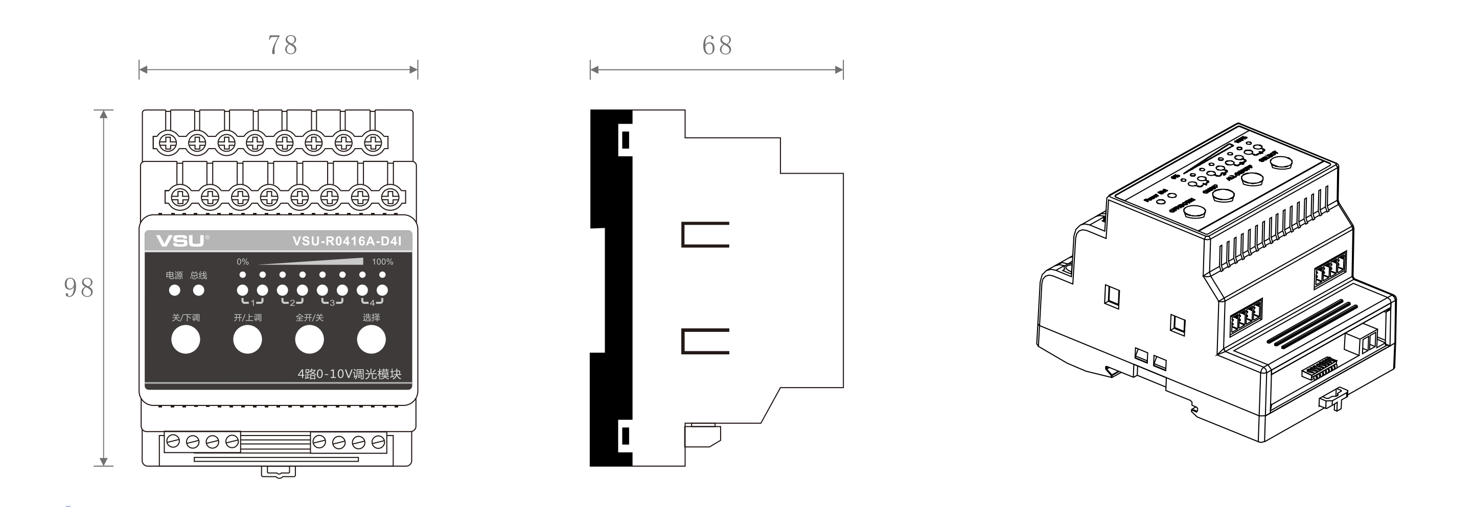 2,提供4路16A繼電器開關和4路0-10V調(diào)光信號;