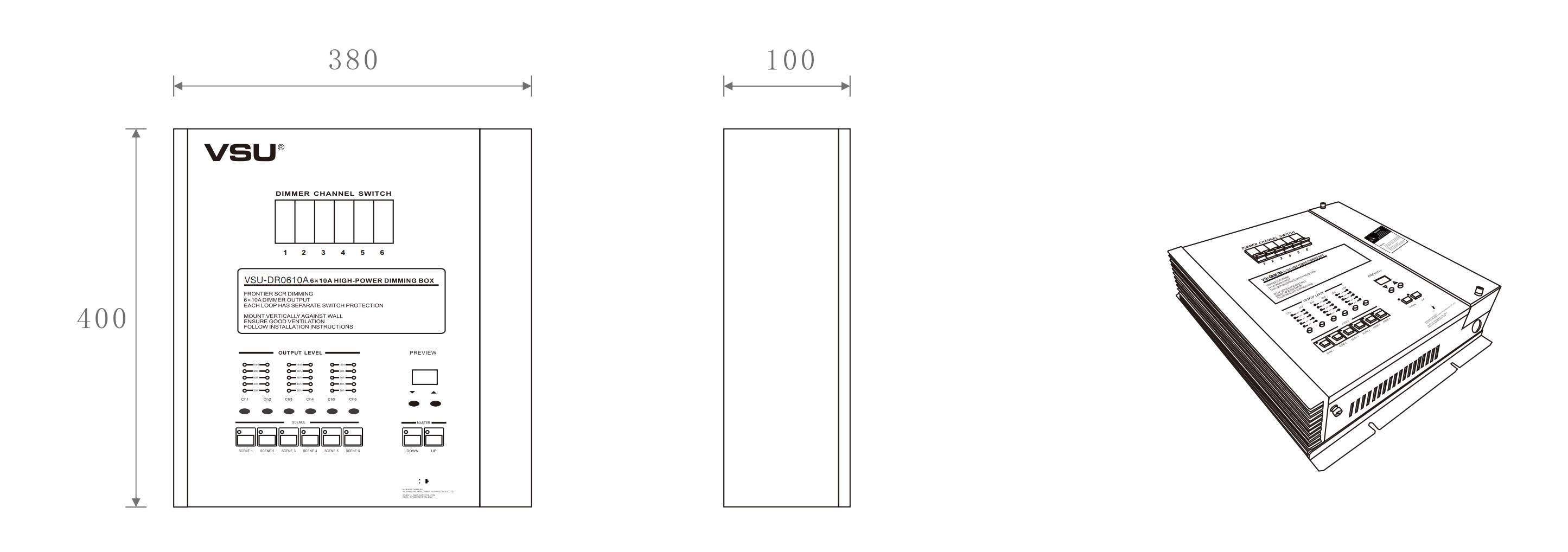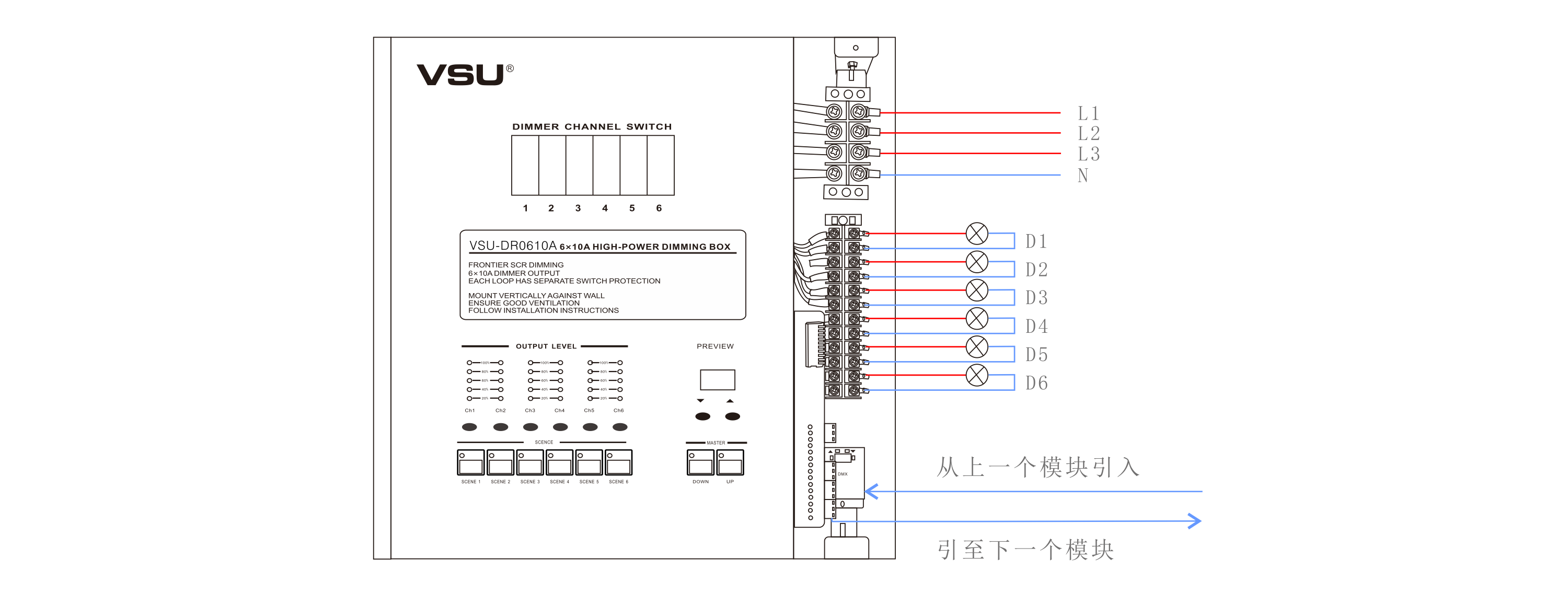 本產(chǎn)品為掛壁式安裝,可控制6路10A(2200W)的射燈、筒燈和白熾燈等的電壓調(diào)光,輸出調(diào)光類型為前沿斬波調(diào)光;機箱采用輕巧型設(shè)計美觀大方。帶斷路器保護. |