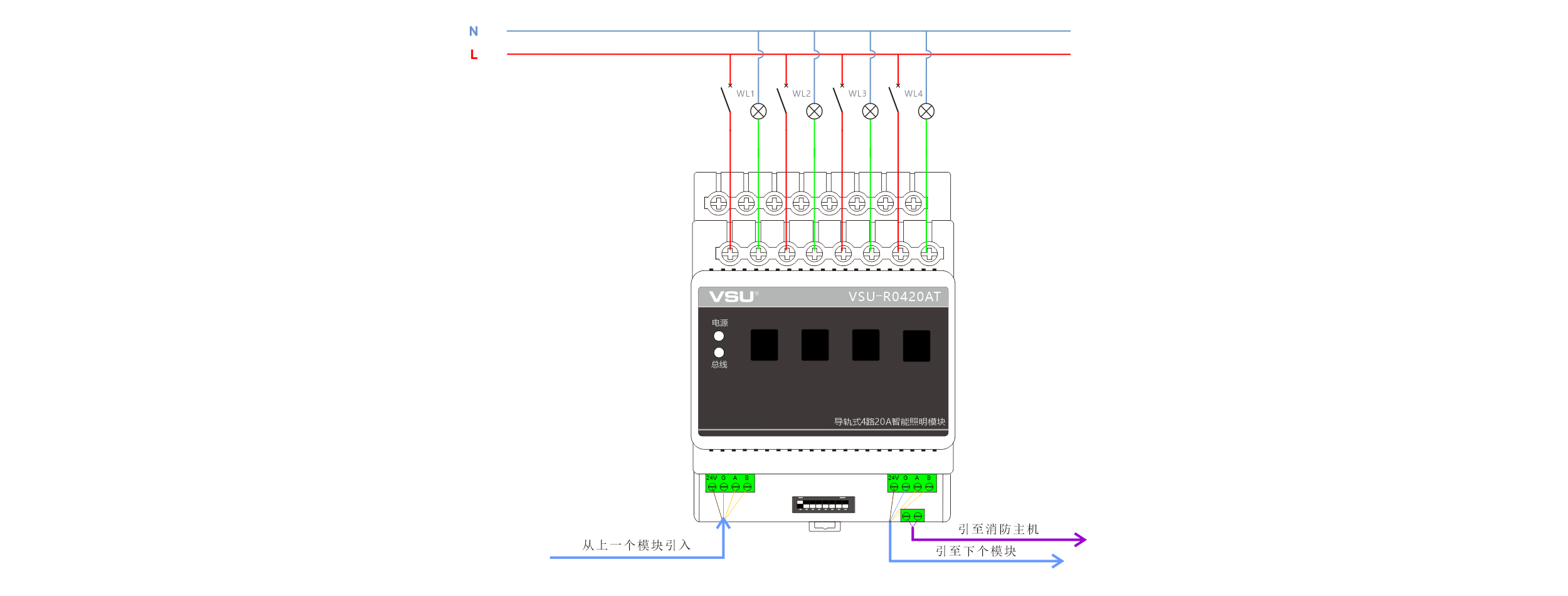 本產(chǎn)品為導(dǎo)軌式安裝,含4路智能繼電器,每回路可獨(dú)立控制4400W燈具的開(kāi)關(guān),帶強(qiáng)切功能和互鎖功能。 |