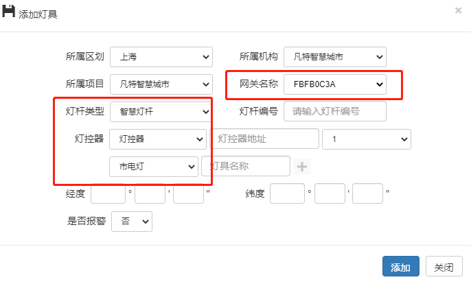在添加網關的基礎上添加燈控器:配置:燈具配置:添加如下圖:燈控地址為燈控器白色貼紙的物理地址